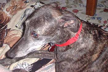 My life with Greyhounds started many years back when my daughter, Angela, decided to adopt a precious Greyhound named Allie from the Mobile, AL track. When Angela married and moved to Dallas, Allie became our sweet charge. My husband fell in love with Allie's sweet temperament, and didn't want to lose both his daughter and his doggie companion to life in TX. Allie's innate shyness and our Dalmatian's, hyper nature fortunately balanced each other out well. After twelve-plus years, we had the heart-wrenching decision to euthanise Lady, our Dalmatian. Since late June, we all were coping with the fact that Lady was gone forever which seemed to be hard on Allie, too.