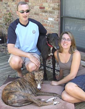 GALT contacted my breeder/owner who called me an "old dawg," and said GALT could have me - he didn't want me anymore - he had given me to someone who lived on the OK-TX border to chase rabbits and didn't know how I could have possibly ended up as a starving stray. Now, I certainly don't feel like an "old dawg." I have lots of energy and love to squeak my toys and play with my buddy, Dafney. She's a beautiful Greyhound like me. Because I'm a little shy with people, it's nice to have another Greyhound to hang out with. We're actually related (her sire is Molotov and my grand-sire is Molotov – how cool is that!!)