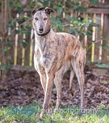 Ashley, racing name, HS Bridezilla, is a 5 year old brindle female born May 14th, 2012. Her sire is BD’s Grayson and her dam is HS Babe. She shows 72 races on file, all in Florida. It is not known at this time if Ashley will be small animal or cat tolerant. Pictures coming soon.