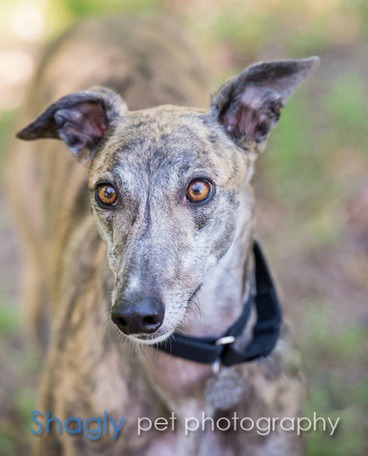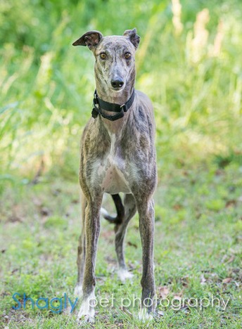 BeeBee is such a sweet girl! She is very shy and tends to warm up to women faster than men (adults and children). Once she knows that you are okay, she is super excited to see you but never jumps on you. You can almost see that she is holding herself back from jumping up on you. Her house manners are impeccable though she does like to counter surf which is a good trick for this petite girl. She walks so well on a lead that I would swear she's had some training. She stays with you, stops when you stop, walks when you walk and always waits for you to walk through the door first. She likes to sleep in her crate but we have stopped closing it at night because she is so well behaved. Her crate is right next to our other greyhound's crate. They are so good together. They do have separate food and water bowls and they never fuss over food or territory. She is not allowed on the furniture in her foster home and she is perfectly fine with that. There are lots of beds on the floor to keep her comfy. I am sure she will find her forever home very quickly.
