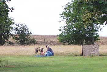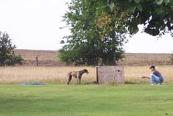 On June 22, 2003, GALT received a call from a greyhound adoption group in San Antonio that had been contacted by Dianna. To help with the situation, GALT contacted Mary McAnally, who in turn called Bonnie Fix, a greyhound friend, who lives close by in Hillsboro. Bonnie came over and verified he was in fact a greyhound and offered to help coordinate Frankie's capture.