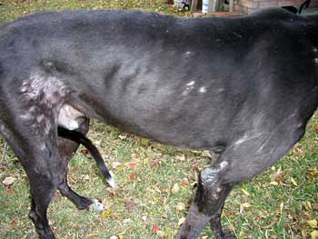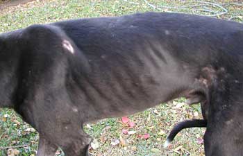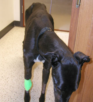 Skittles has been under the care and housing of Dr. Susan O'Neal of the Diagnostic Clinic since November 1. He has been receiving intravenous fluids with antibiotics until today, when he was switched to oral medicines. He is being fed every 3-4 hours in an attempt to put weight on him ? he is down to 48.8 pounds. He is more alert, but still shaky and weak. Dr. O'Neal is cautiously optimistic for his recovery; the results of the Leptosporosis tests should be back tomorrow, Monday, November 6. She hopes he will be able to leave in the next few days, depending on his response to the oral meds.