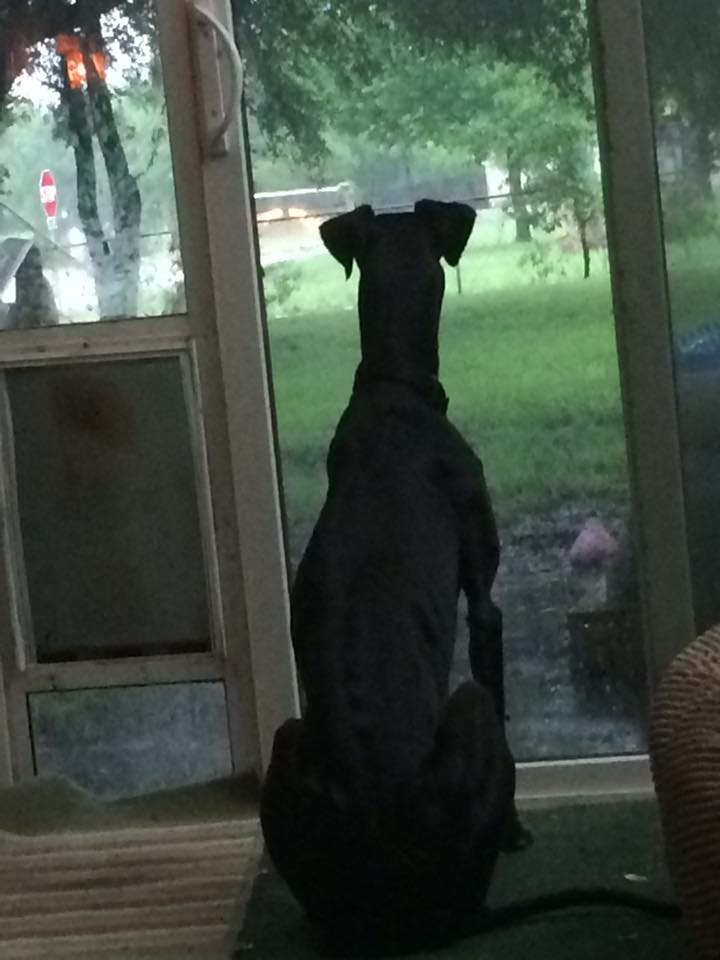 Jane is the cutest little thing you have ever seen. She is itsy bitsy - only about 40 pounds and not very tall so she's always putting her front paws up on things to be able to see. I have not let her come up on the furniture to sit in our laps since her forever family might not want her on the furniture, but she sure wants to!! She's smart, sweet and spunky. She is so funny when she gets in her stance to stand up to the big girls. They are NOT going to push her over just because she's little. She is a champion roacher and owner of all the toys. And she doesn't just take them. She plays with each and every one of them. To my big girls, she is the pesky little sister -“ not so pesky that she needs a growl but she wants to do whatever the big girls do. And she can do something that the big girls can't do! Jane caught the squirrel that has been tormenting them for months. About the only other issue we have had is that she barks at the Yorkies next door through the fence. So, I guess no small dogs for her! If you are looking for a lap dog who knows how to use a dog door, can catch a squirrel and is the first to learn a treat toy, please come and meet her. She's a very special little girl who is looking for a forever lap.