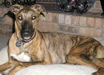 Jetta is a cute 9-month-old brindle female born July 7, 2006. Her dam is Fuzzy's Roadrunner, making her grand sire the late Gable Dodge, and her sire is Kiowa