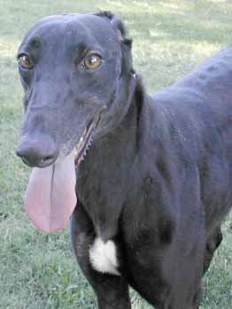 Lili, aka DOX Lili, is a small black female with only a tiny white tux on her chest and a smidgen on her hind feet. She was born April 20, 2000, and is sister to Loli and Tammy. Lili has a very outgoing sweet personality and is full of spirit. The three sisters received lots of hands-on attention growing up. Their sire was Class by Design and their dam was Gable Lolita, out of Wigwam Wag. After going off to schooling last November and then graduation, Lili was off to the Corpus Christi track, where she wasn't fast enough....so here she is, ready to race into someone's heart. Lili is cat friendly.