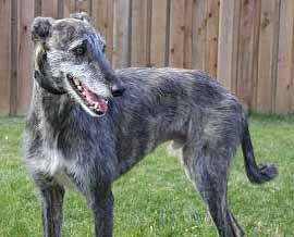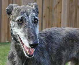 He actually looks like a deerhound. He's a wire-haired galgo, as some of them come. He's brindle and weighs 25 kgs. (about 55 pounds). His name, Llop, means "wolf" in Catalan (the language spoken in this part of Spain). Llop's story of rescue is told here. He was adopted through us in August to a very nice family three hours drive from Barcelona. The problem was that the three kids, all under ten, fussed over him a lot, and their mother who was at home all day, had him outside most of the day while the kids were at school. We had thought that she was more of a dog lover. We asked for him back, because understandably, he was developing separation anxiety and the decision was mutual. The little boy was so attached to him, he was devastated when they parted. If ever there is a possibility of sending him a photo of Llop with his new family I'm sure it will help him overcome their parting. Llop is about 4 years old and was not used for racing, but probably for hunting in Spain.