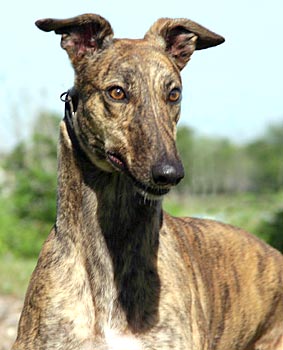 Meme, aka Memento, is a beautiful, 2-year-old brindle female born March 23, 2007. Her sire is the Irish-bred Maryville Rumble, and her dam is Simone.