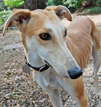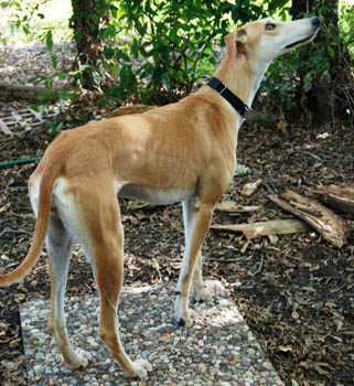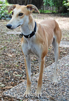 Penelope is a small, untattooed, fawn female. She is estimated to be between 1 and 1½ years old. She was found as a stray on a ranch outside of Crosbyton, TX near Lubbock along with Timothy and Arthur. All three are thin and were extremely happy to find someone willing to shelter, water, and feed them! Thankfully, Penelope is heartworm negative. GALT's West Texas representatives took great care of her.