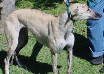 Rachel is a 1½-year-old fawn brindle female who is just about the sweetest girl we've seen! She loves being with people more than anything and gets along