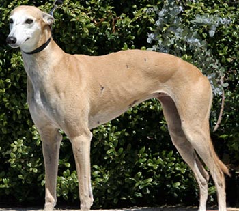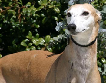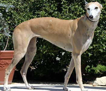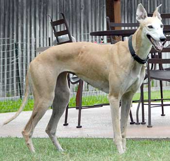 Trixie is a cute, 6-year-old fawn female greyhound, born March 19, 2003. Her sire is Oshkosh Slammer and her dam is Ranted. Trixie is the B pup in a litter of